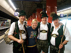 Me with a group of men dressed in Lederhosen in the subway (U-Bahn)